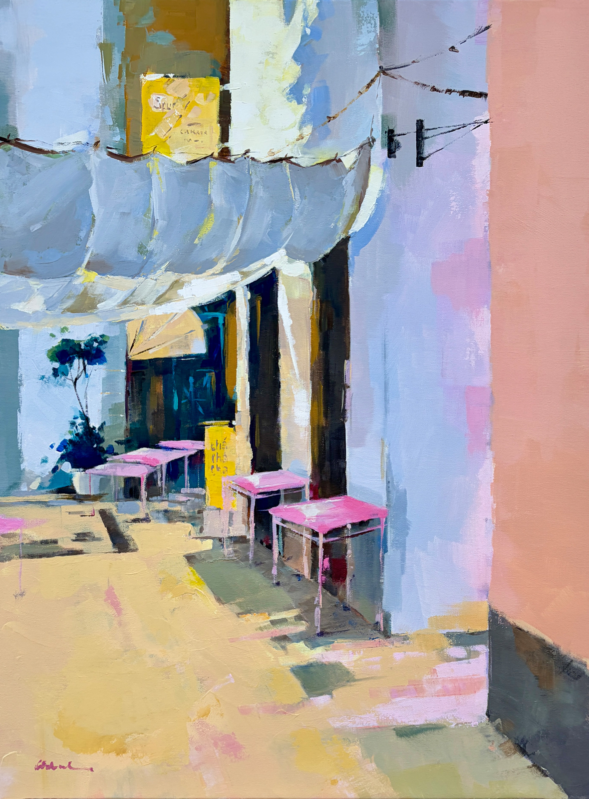 These paintings explore moments where strong light destabilizes form and reorganizes it through color, edge, and relation. Rather than describing a place, they register how perception shifts under glare, contrast, and reflection.